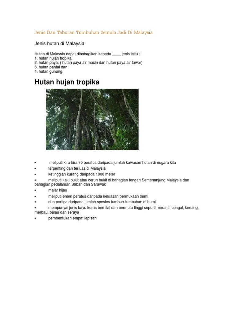 · sebagai pencegah dan penyaring alami. Pokok bakau yang berakar banir tumbuh dikawasan yang lebih jauh dari pantai. Hutan paya air masin mempunyai tumbuhan bawah yang banyak. Terdapat di kawasan pinggir pantai laut yang berlumpur ,terlindung daripada pukulan ombak dan sering . Apakah kegunaan pokok kayu keras di dalam hutan hujan tropika? Kepentingan tumbuhan semulajadi di malaysia.